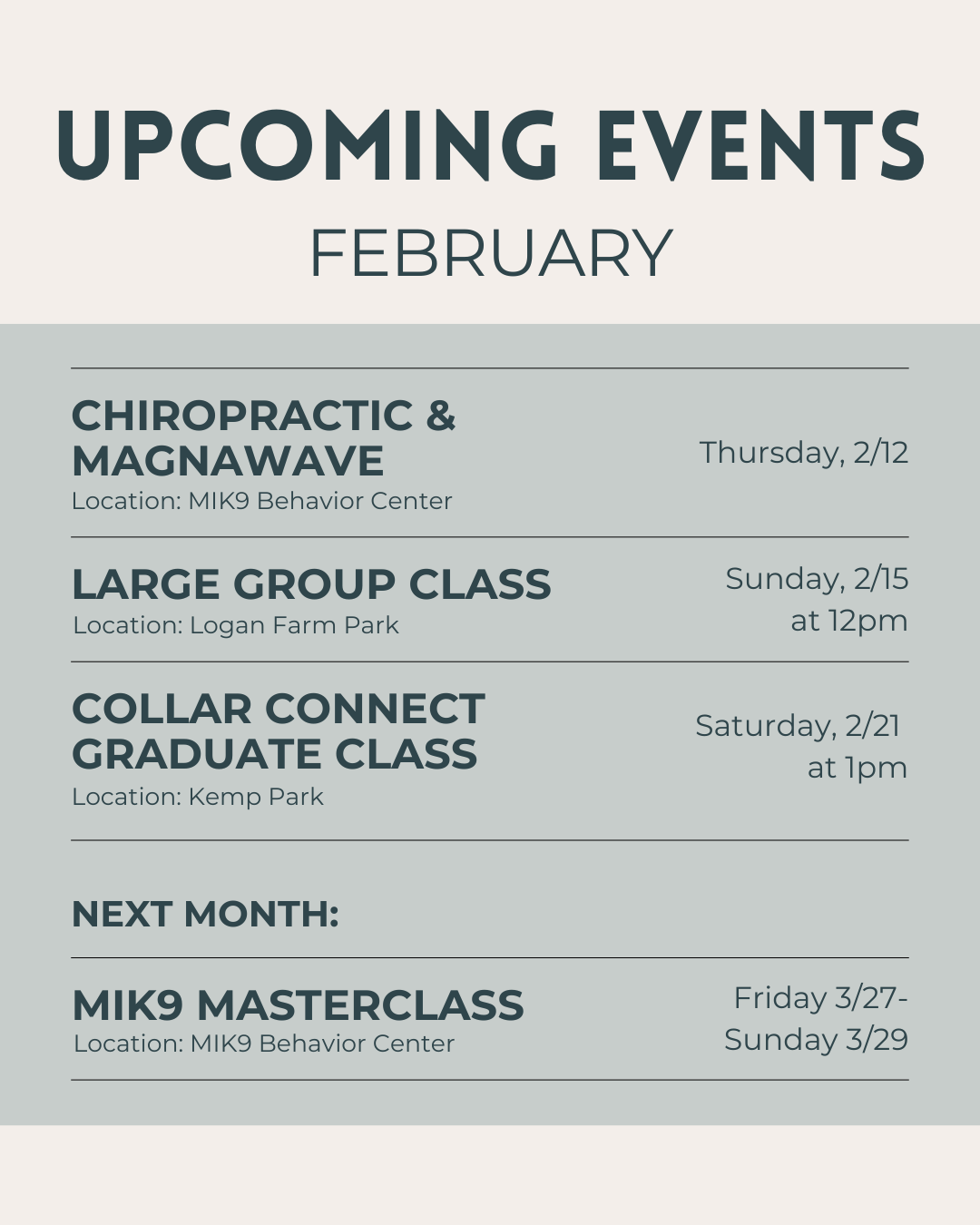 We’ll have multiple Pack Talks each month where you can join in on the conversation with the MIK9 team and the MIK9 Extended Community. If you have a training question or if you just want to listen and learn you will be able to join any of our zoom calls!