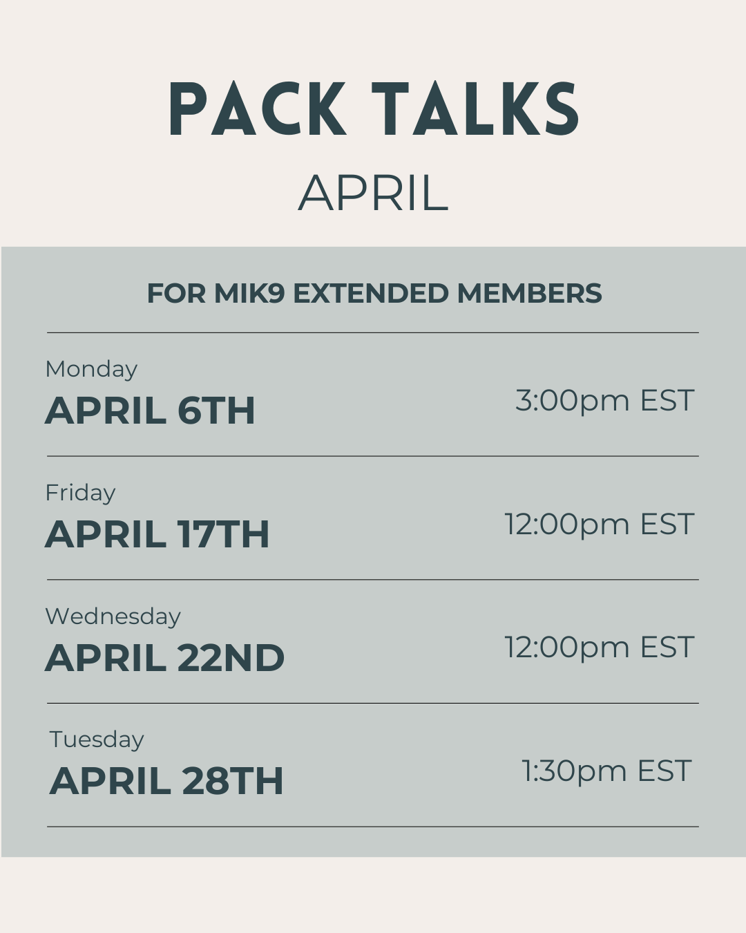 Receive ALL of MIK9 Training Guides (and hours of training videos, discounts on select services and merchandise including slip leads, and countless other dog training resources!) for only $45 by signing up to become an Extended Pack Member! Click here for more information.